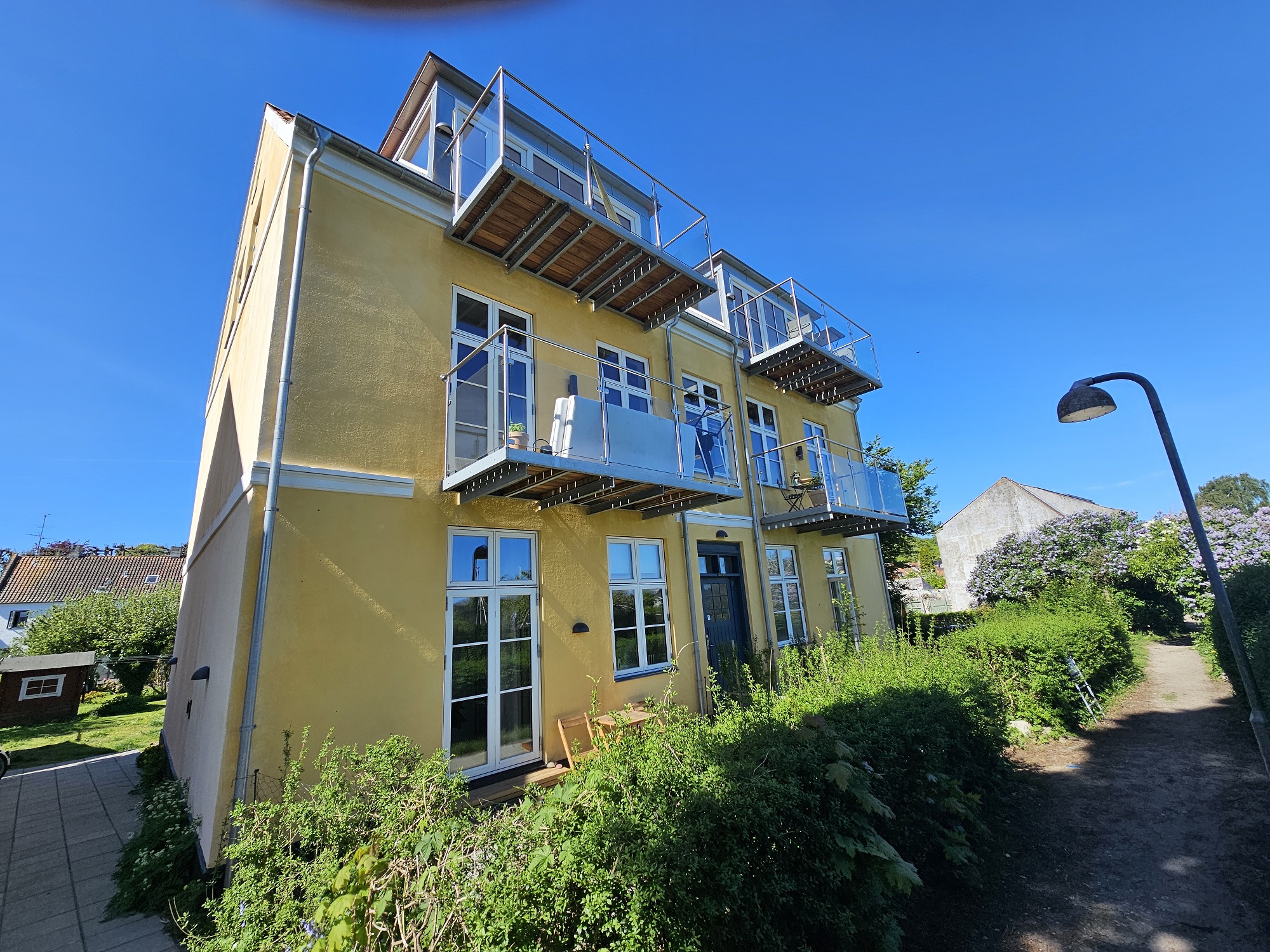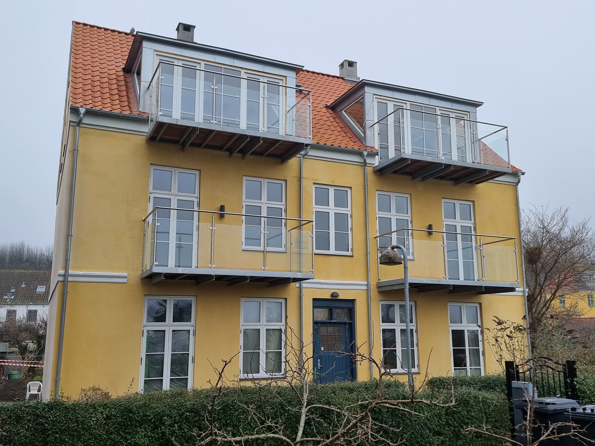 Vi har ombygget ejendommen til 4 nye luksuslejligheder med altaner, skiftet tag, pudset facade, renoveret have m.v.
