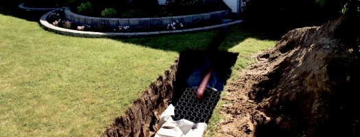 Med en faskine leder man vandet væk fra huset, og ikke ned i kloaksystemet, som flere steder er presset til det yderste i forvejen.